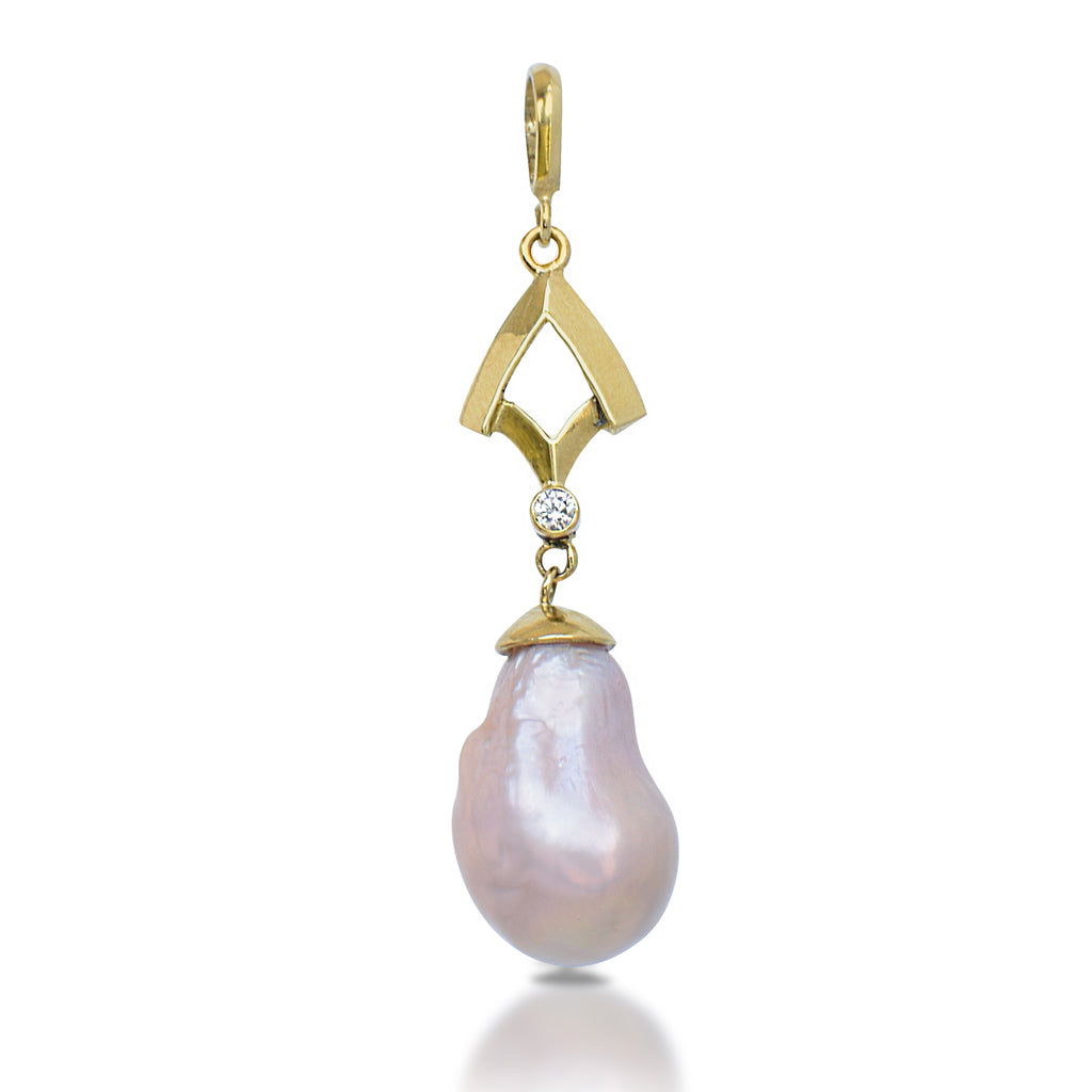 Simple Pink Freshwater Pearl Earrings with Diamonds