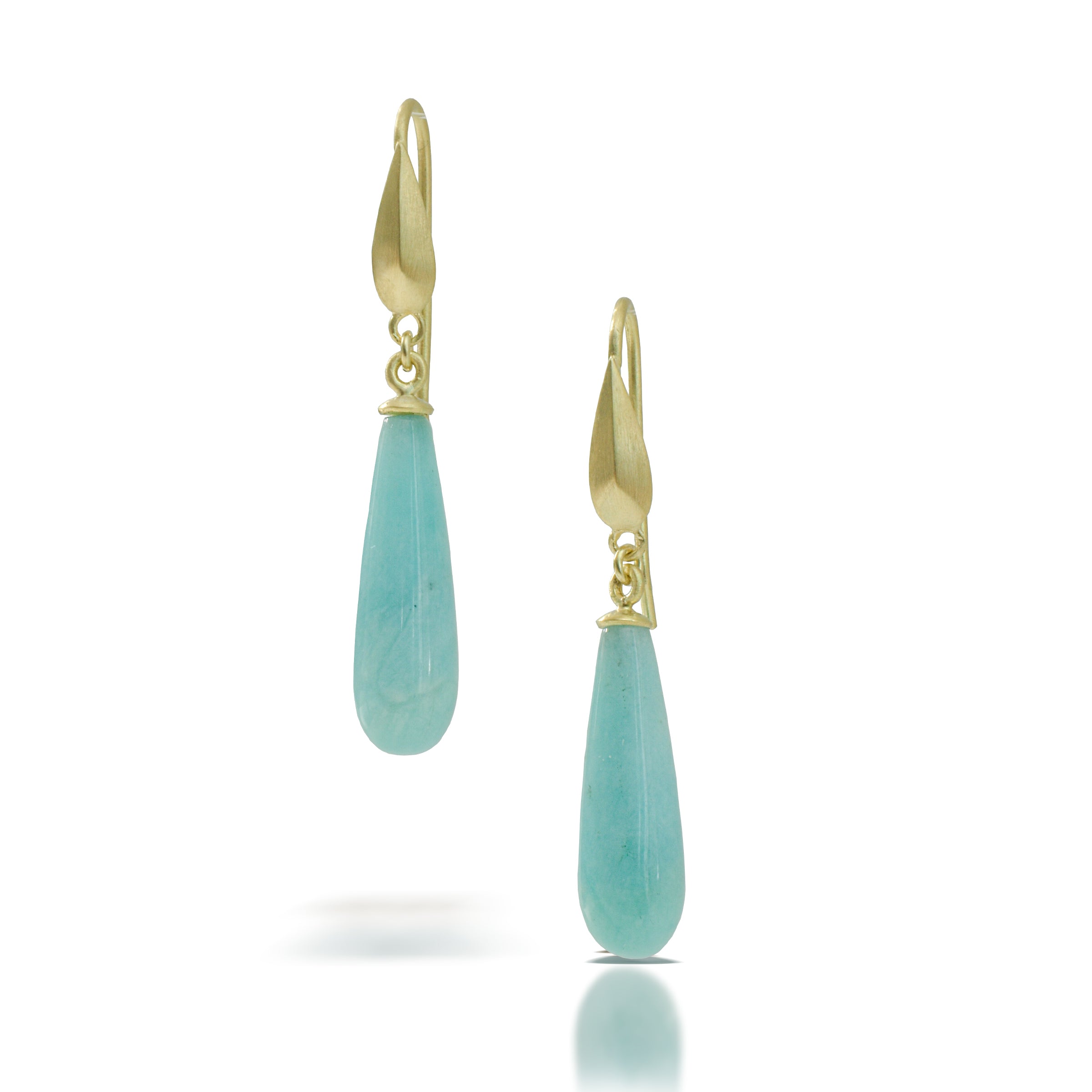 Warm 18k yellow gold with a brush finish.  Luxuriantly cool ocean blue amazonite.  Beautiful enough on their own, but together with my sleek Pyrus element adorning the top?  You're one cocktail away from a chic Caribbean getaway.