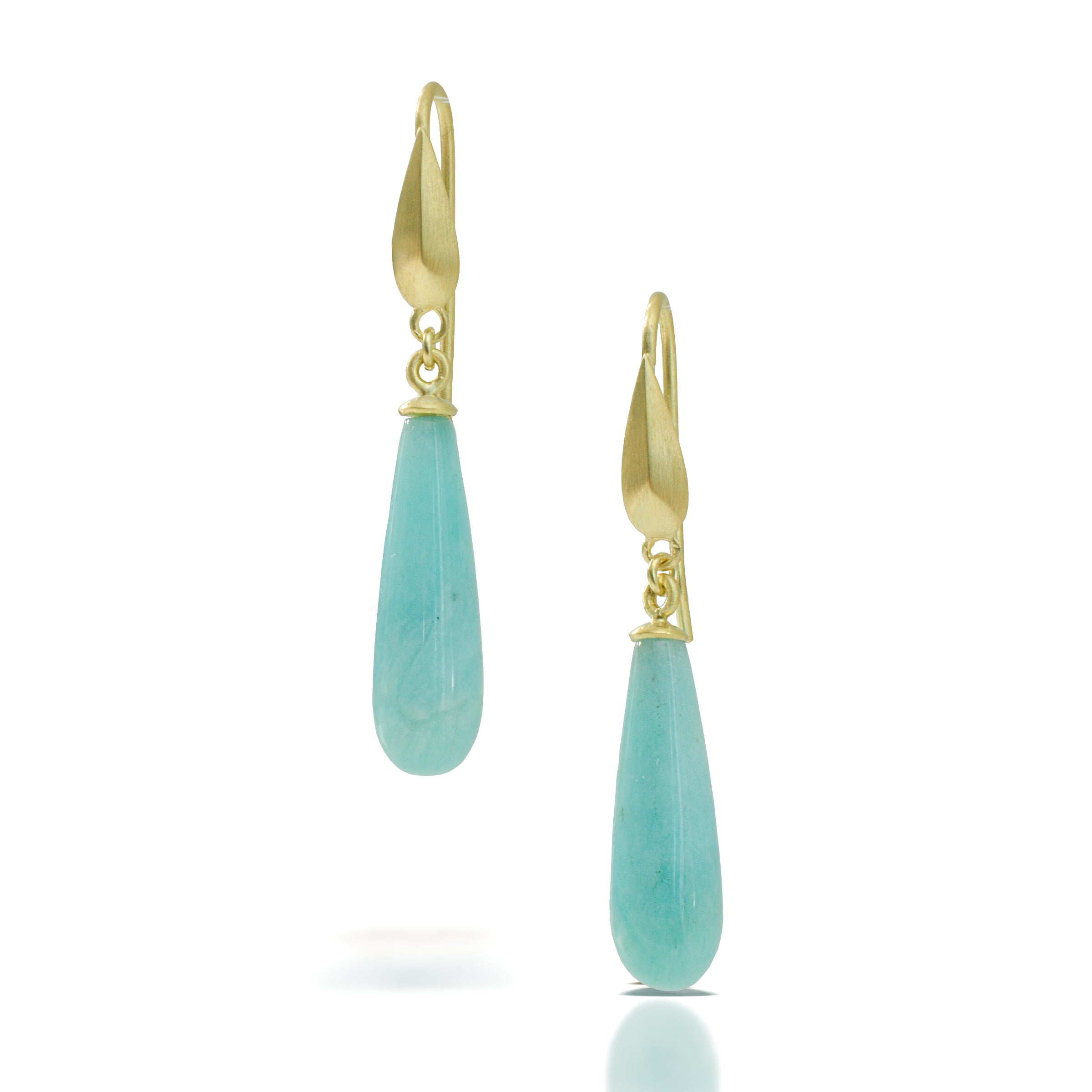 Warm 18k yellow gold with a brush finish. Luxuriantly cool ocean blue amazonite. Beautiful enough on their own, but together with my sleek Pyrus element adorning the top? You're one cocktail away from a chic Caribbean getaway.